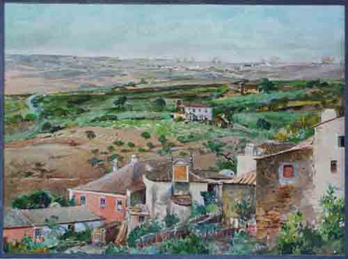 Aguarela de Alfredo Roque Gameiro,com a foz do rio das Maçãs, na altura em que dividia a praia ao meio.