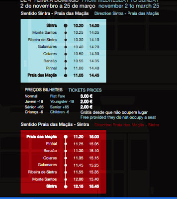Eléctrico da Praia das Maçãs - Horário de Inverno